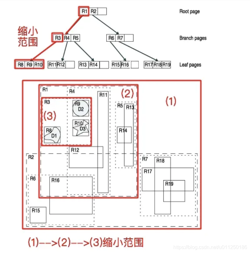 通过索引操作对象的 MBB 来进行查询一共分为两步