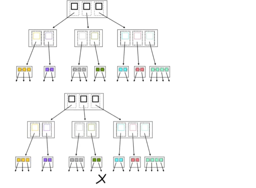 要查找某一满足条件的点,先去找到满足条件的线段,然后遍历所在线段上的点,即可找到答案。B 树是一种相对来说比较复杂的数据结构,尤其是在它的删除与插入操作过程中,因为它涉及到了叶子结点的分解与合并。