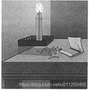 找到正确答案的关键是要克服所谓的“功能固定性”。你看着这个盒子,本来只看到一个功能——作为图钉的容器。但通过重新思考,你最终会发现盒子还有另一个功能——作为蜡烛的平台。