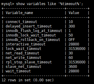 上图中的interactive_timeout = 28800 s,也就是28800/3600 = 8小时。