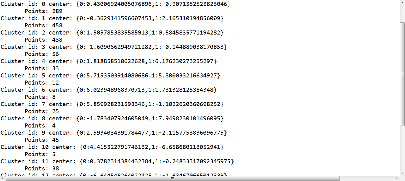 本文主要是java语言实现,1000个点(本文是二维向量,也可以是多维,实现原理和程序一样),程序运行过程中会输出每一次遍历点的簇中心,和簇中包含的点,并将最终结果通过插件在html中显示。
