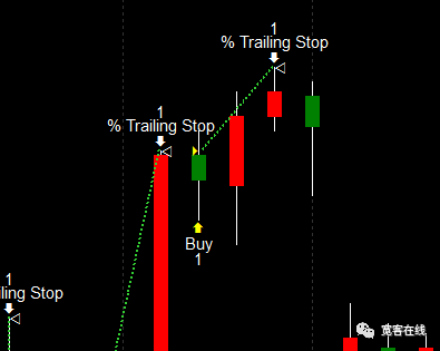 上面这图,空心三角形就是出场位置的标示,看看那个出场标示在哪边?没错,就是K线的最高点,请想一想这有没有问题?我们定下的出场除了多空翻单外,就是移动出场,既然移动出场要有折返才会出场,那出场点在K线的最高点有可能吗?