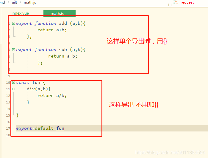 1、如果一个模块里写多个export,那在引用时,可以用import {},这样可以按需引入多个对象、方法、变量。