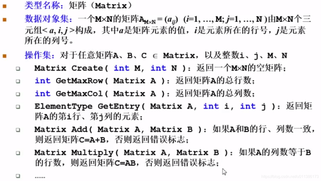 - MxN矩阵存储方式不关心:二维数组?一维数组?十字链表?
