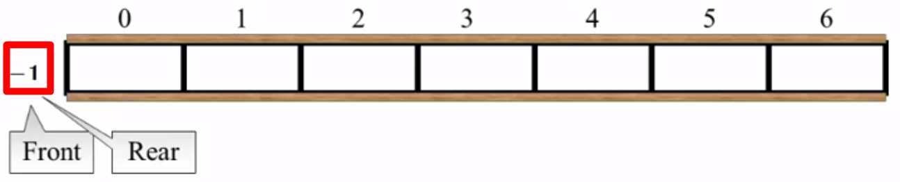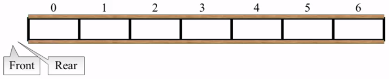 一开始队列为空的,将Front和Rear都设为-1: