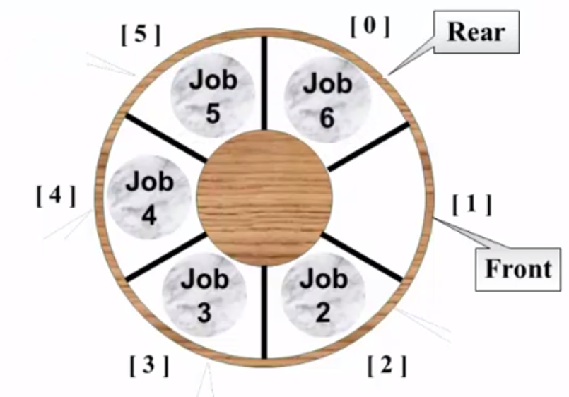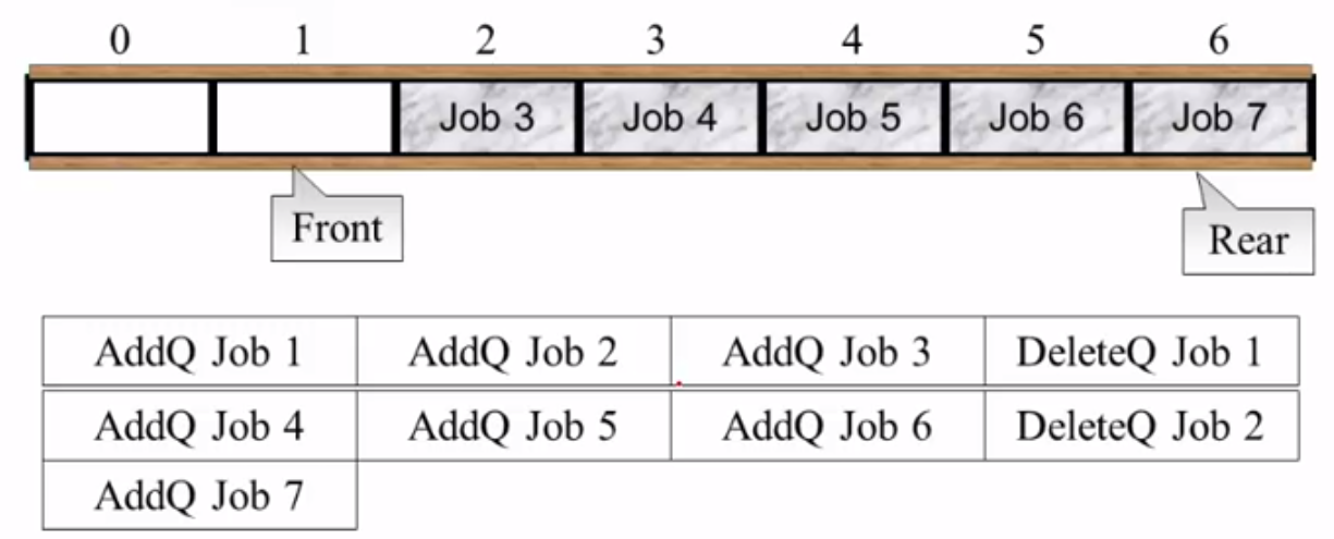 8、此时再来一个Job,如果加入到1位置处,队列就满了,且Front和Rear相等。但是前面说Front = Rear表示队列空。所以Front == Rear:队列是满还是空?无法判断。