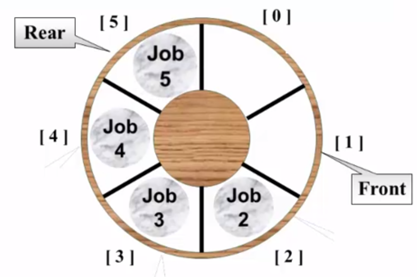front和rear“差距”有6种情况:0、1、2、3、4、5 --->如果数组大小为n,那front和rear的差距有n种情况。