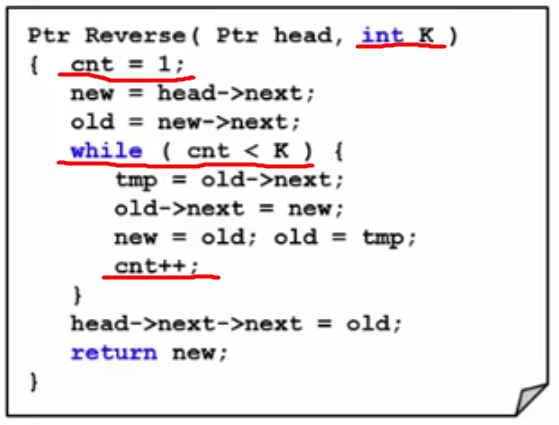 参数head默认指向的是空的头结点,因为有K的限制,所以: