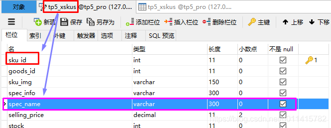 主键为"sku_id",需要进行匹配的字段为:"spec_name"