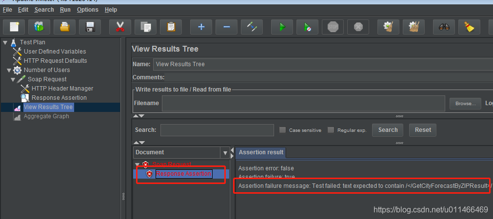 3、执行结果断言失败,原因:匹配文本内容不存在或不包含,要查看soap请求的响应: