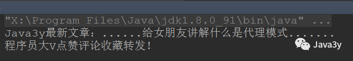 public class Java3y implements Programmer {@Overridepublic void coding() {System.out.println("Java3y最新文章:......给女朋友讲解什么是代理模式.......");}