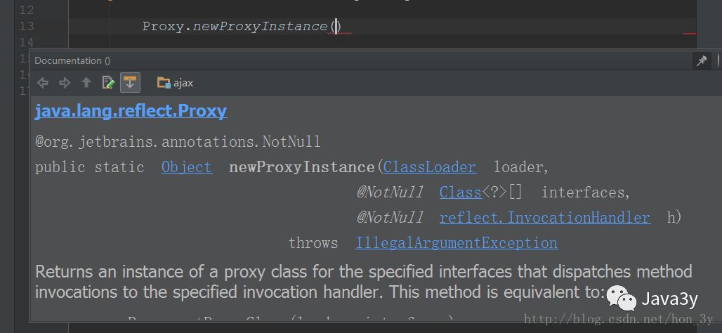 Java提供了一个Proxy类,调用它的newInstance方法可以生成某个对象的代理对象,该方法需要三个参数: