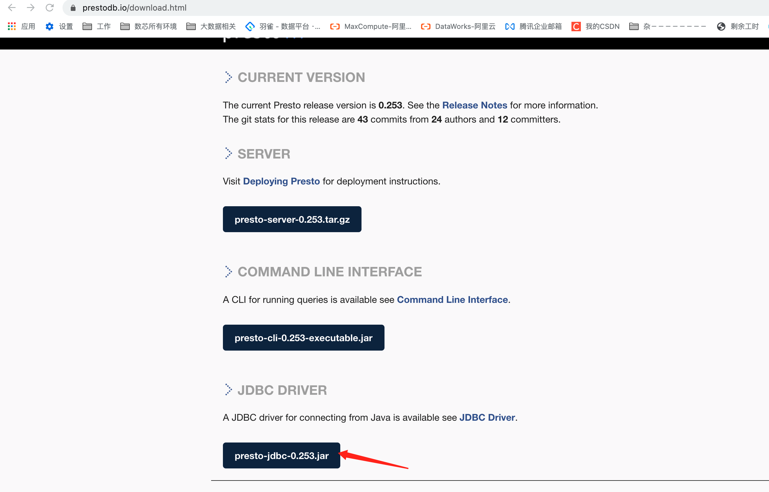1、下载presto jcdc连接jar包(https://prestodb.io/download.html)