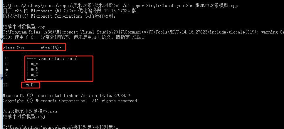 输入命令,例如:cl /d1 reportSingleClassLayoutSun Sun这个类所在文件的名称
