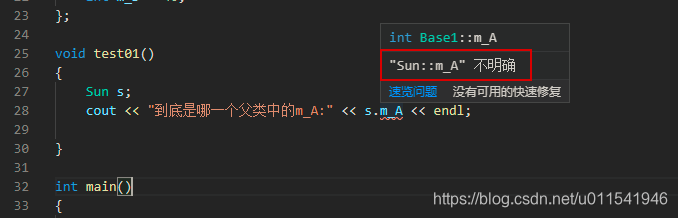 {Sun s;cout << "到底是哪一个父类中的m_A:" << s.m_A << endl;}int main()