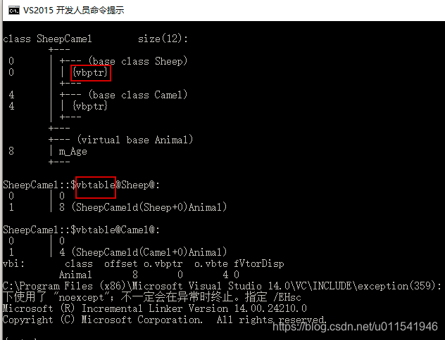 {SheepCamel sc;sc.Sheep::m_Age = 18;sc.Camel::m_Age = 28;cout << "sc.Sheep::m_Age = " << sc.Sheep::m_Age << endl;cout << "sc.Camel::m_Age = " << sc.Camel::m_Age << endl;//使用虚继承之后,还可以使用下面方式访问m_Agecout << "使用虚继承,直接子类对象访问" << sc.m_Age << endl;