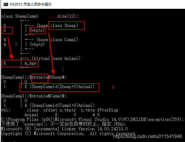 3)在数字3中,旁边这个0表示这个时候vbptr的偏移量是0,加上8等于8,就会找到序号为8这个m_Age成员变量。