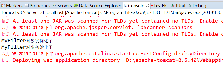 重新部署下Tomcat,看看控制台这几句话是否打印出来。