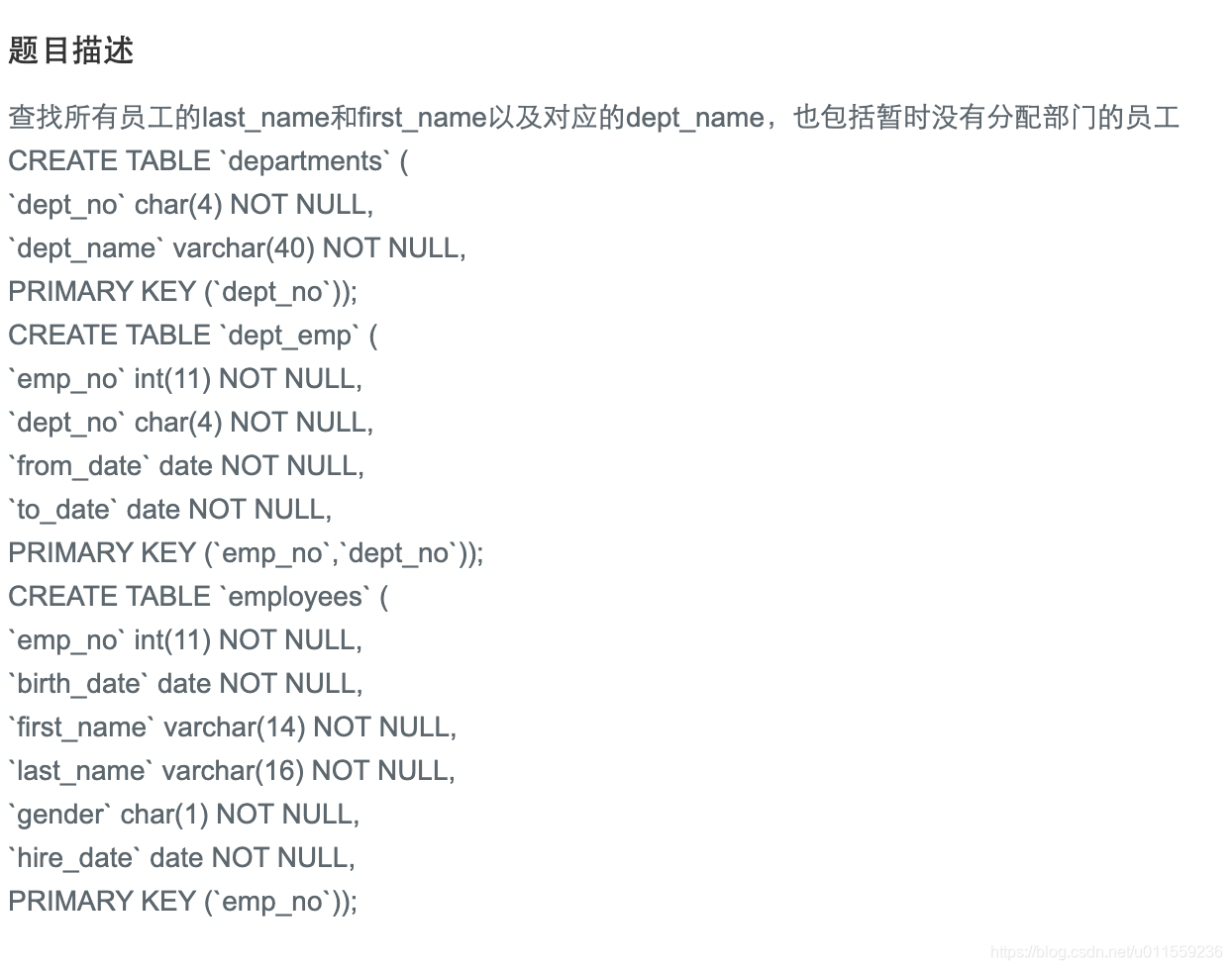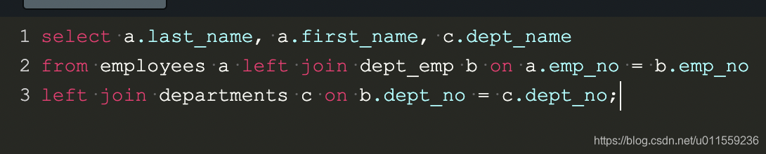 本文主要是介绍Mysql - 三个表的左链接 - 查找所有员工的last_name和first_name以及对应的dept_name,也包括暂时没有分配部门的员工,希望对大家解决编程问题提供一定的参考价值,需要的开发者们随着小编来一起学习吧!