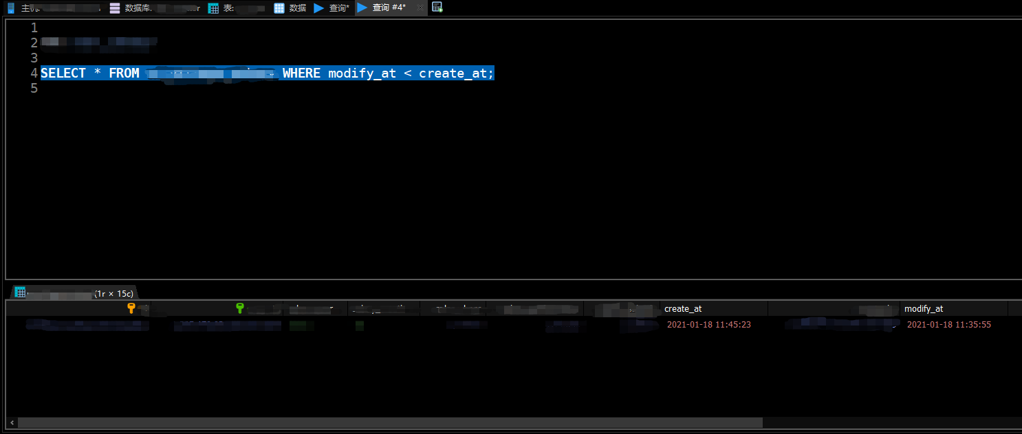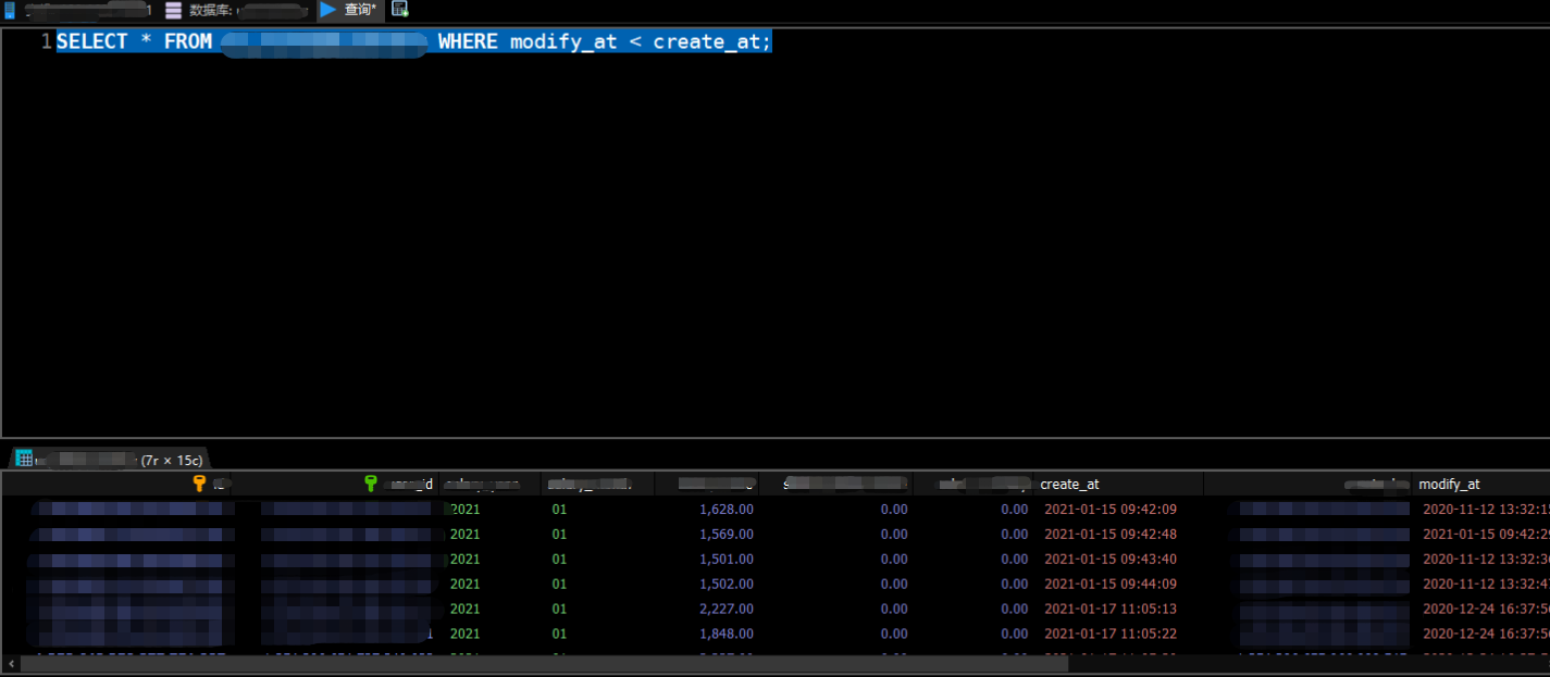某一天偶然发现生产库某个业务存在修改时间modify_at小于创建时间create_at的数据: