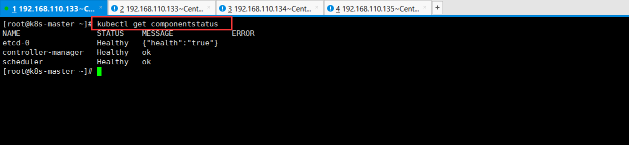 1 [root@k8s-master ~]# systemctl restart kube-apiserver.service 2 [root@k8s-master ~]# systemctl restart kube-controller-manager.service 3 [root@k8s-master ~]# systemctl restart kube-scheduler.service 4 [root@k8s-master ~]#