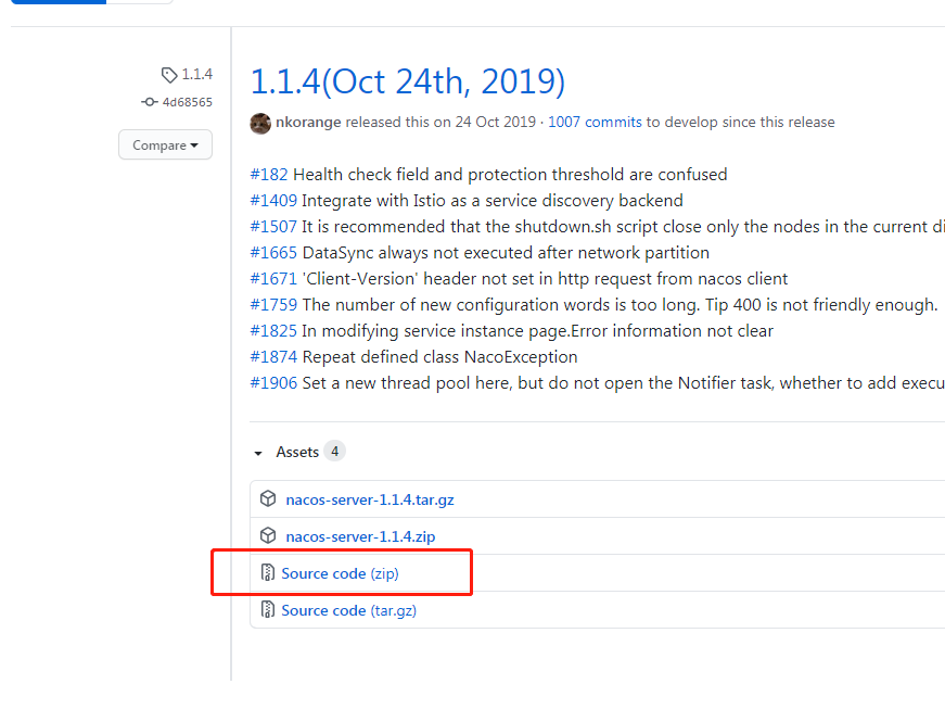 官网下载地址:https://github.com/alibaba/nacos/releases/tag/1.1.4