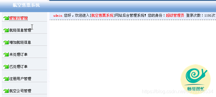 注册用户登录系统后,可以查询机票,预订机票,管理自己的订单。管理员可以管理航班信息,订单信息,用户信息。