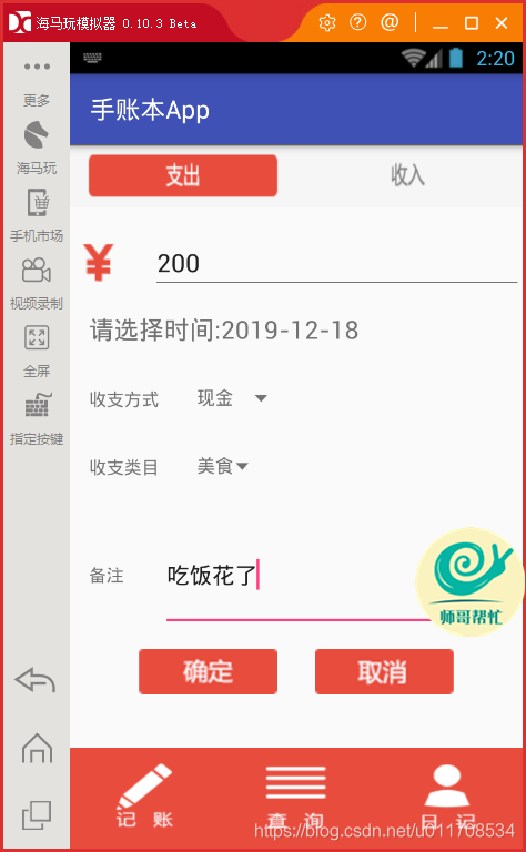 该手账本app实现了注册、登录、记录收入、支出、查询、日记等功能,适合新手学习。