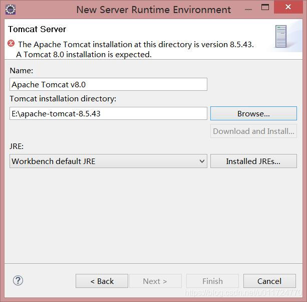 起因:eclipse版本过低,只支持8.0的版本,但是tomcat现在官网只提供8.5.xx的下载,于是,我抱着侥幸的心里下载试了试,很明显,不行: