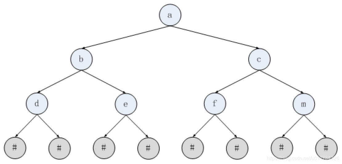 {char ch;scanf("%c",&ch);getchar();//printf("--:%c\n",ch);if(ch == '#'){*b = NULL;return;}else{*b = malloc(sizeof(btree));(*b)->data = ch;createTree(&((*b)->lchild));createTree(&((*b)->rchild));}return;