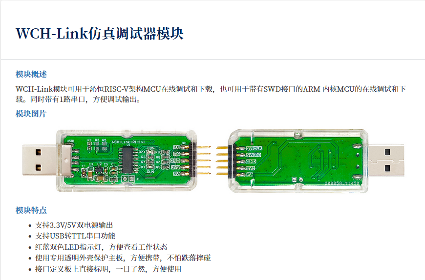 1.硬件:wch-link,淘宝沁恒官方店9块9(沁恒,yyds),支持CH32V系列、CH32F系列和带有SWD接口的Arm核单片机,自带虚拟串口功能(省掉一个usb转串口模块)