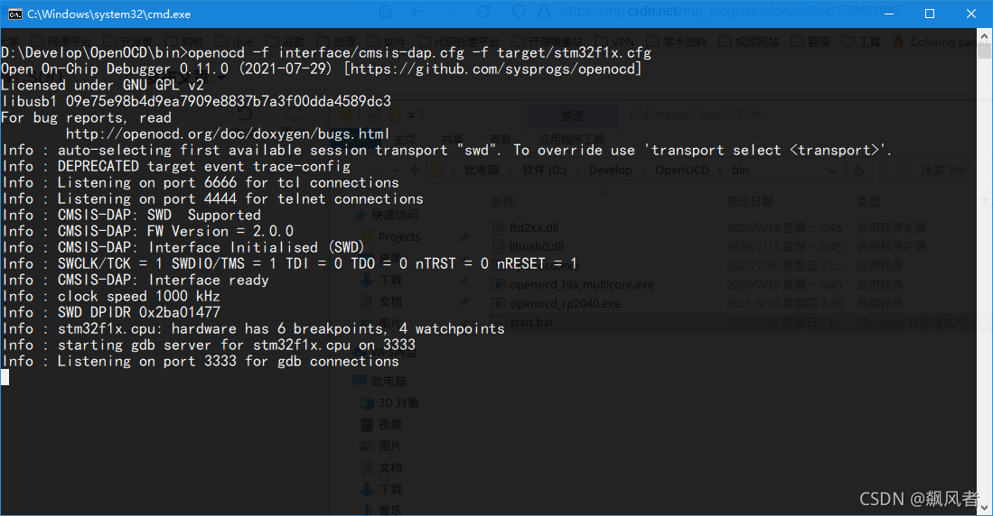 2.软件:openocd,openocd是一个开源调试工具链,可以调试多种Arm核单片机