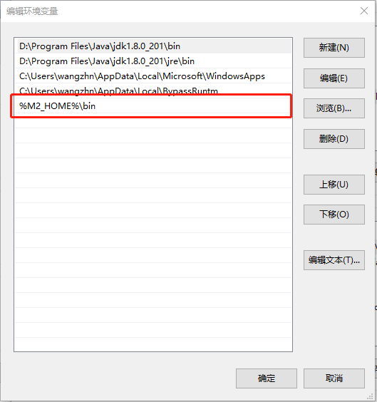 2、配置完M2_HOME,配置path。%M2_HOME%\bin;
