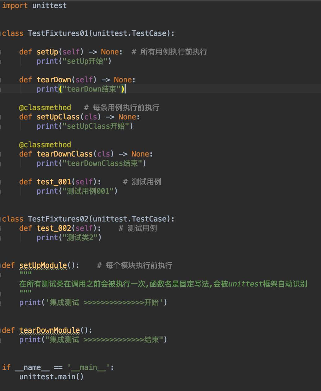 三个方法的逻辑优先级: setUp()&tearDown() < setUpClass()&tearDownClass() < setUpModule()&tearDownModule()