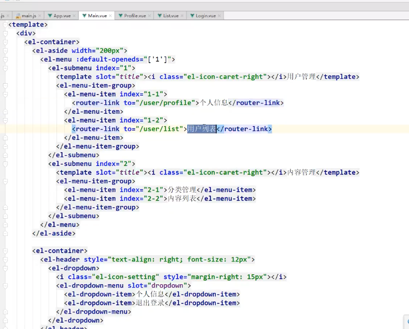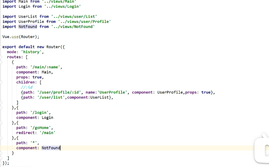 import content from '@/components/content'Vue.use(Router)export default new Router({routes: [{path: '/',name: 'HelloWorld',component: HelloWorld},{path: '/content',name: 'content',component: content}]