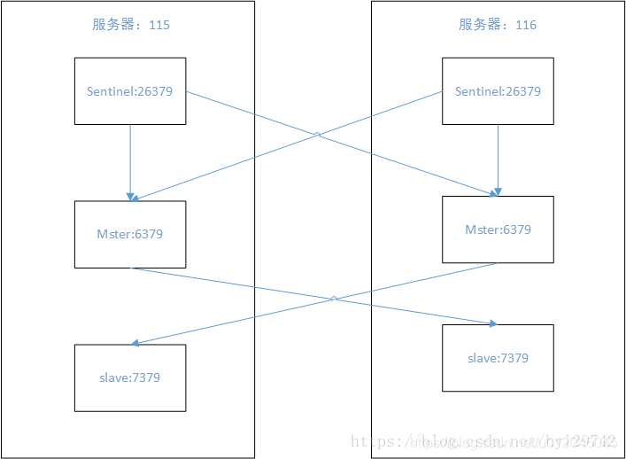 因为测试环境只有两台服务器,一般哨兵不太可能会挂,所以我改成了如下: