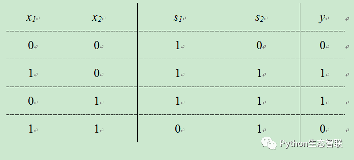 观察真值表x1、x2、y,可以发现确实符合异或门的输出。使用Python可轻松实现异或门,如下所示: