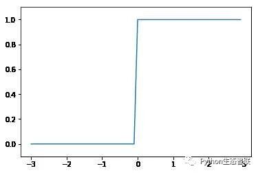 如式(3),输入大于0,输出为1,否则输出为0。Python实现如下: