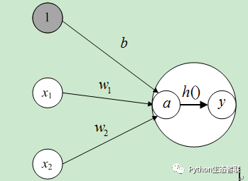 式(4)计算输入信号和偏置b的总和,记为a,接着用h()函数将a转换为输出y。这里我们用下图来形象地表示式(4)和式(5)。