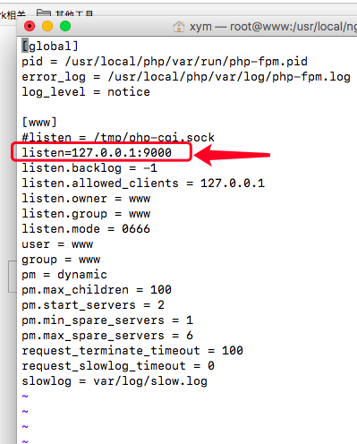 #listen = /tmp/php-cgi.sock改为 listen=127.0.0.1:9000