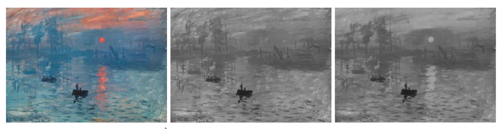 1.若数字图像仅被看做是光学记录,那么灰度图像仅需要使用平坦光谱相应(flat spectral response)记录其光强度。但是我们希望数字图像能保留一些有意义的视觉体验,即使是在灰度图像上。