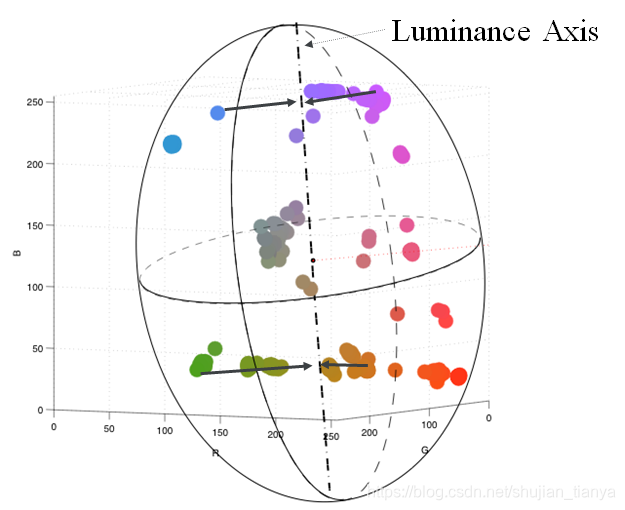 - 可以将图像中的颜色值投影到由椭球体主轴定义的亮度轴(luminance axis)上。