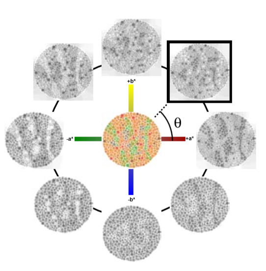 3.视觉科学家认为,人类视觉系统并不能感知绝对的值,相反,色度和亮度感知是基于相对评估的,在某种程度上是由于早期视觉处理阶段的细胞中心-周围组织( center-surround organization)。