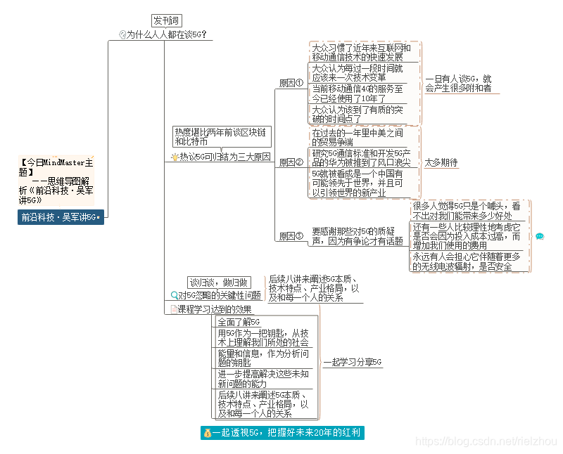 今天针对《前沿科技·吴军讲5G》的MindMaster思维导图做一下解析,让我们看看为什么人人都在谈5G。
