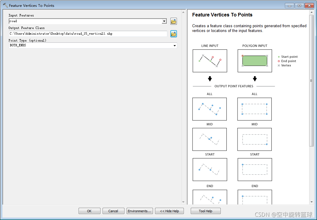 使用工具箱中的Feature Vertices To Points工具提取端点。