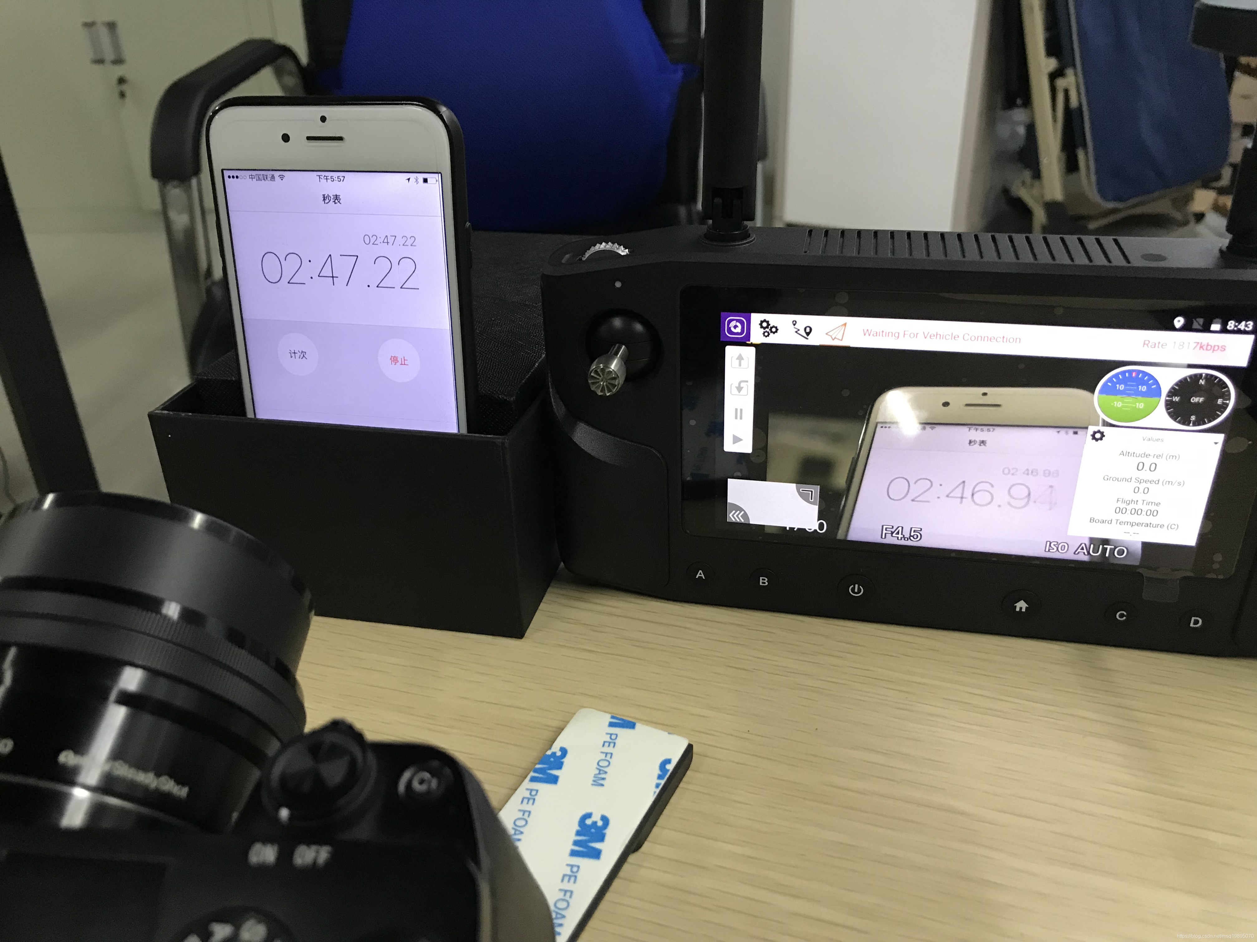 图传最重要的指标就是延时,造成延时的有图像采集编码,图像传输,图像解码显示这3大部分,这种一体图传,图像传输和图像解码显示会占用很多时间。我们测试下来在相对静止的图像情况下200MS左右的延迟,官方称最低110MS。我们在室内测试200MS到280MS之间,这个参数可以接受。还没有去室外,如果室外图像变化剧烈,和距离干扰问题,可能延迟会加大。