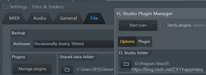 - 注意安装结束之后首先不要打开Cubase,打开FLStudio,选择Options->File Setttings->File->manage plugins->添加32位以及64位的插件路径(即刚刚安装时选择的文件夹)
