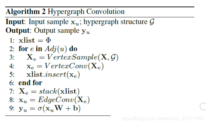 超图卷积由两个子模块组成:顶点卷积子模块和超边卷积子模块。顶点卷积将顶点特征集合到上边缘,然后上边缘卷积将相邻的上边缘特征集合到形心顶点。