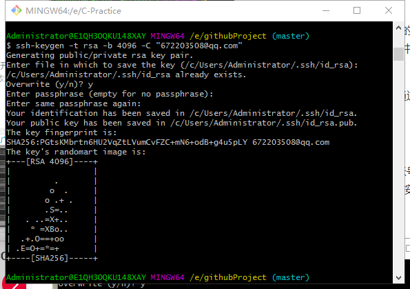 后边的email是你注册github的邮箱。之后会有一些简单的操作,你确认之后一路按Enter即可。创建成功后是如下界面