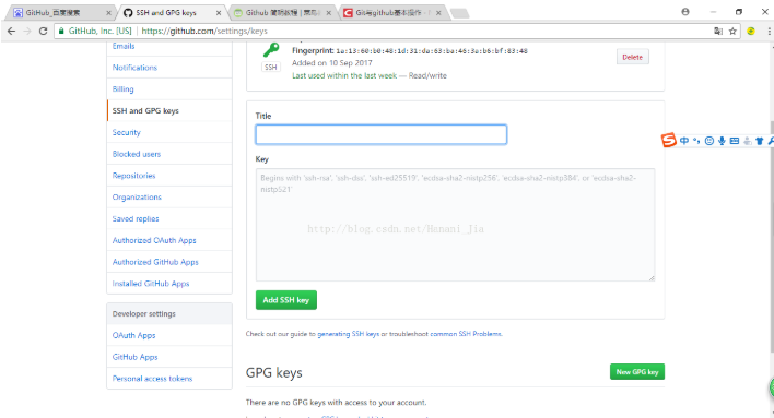 重新登录你的github,打开github的设置页面,找到SSH and GPG keys这个选项,然后重新添加一个SSH keys
